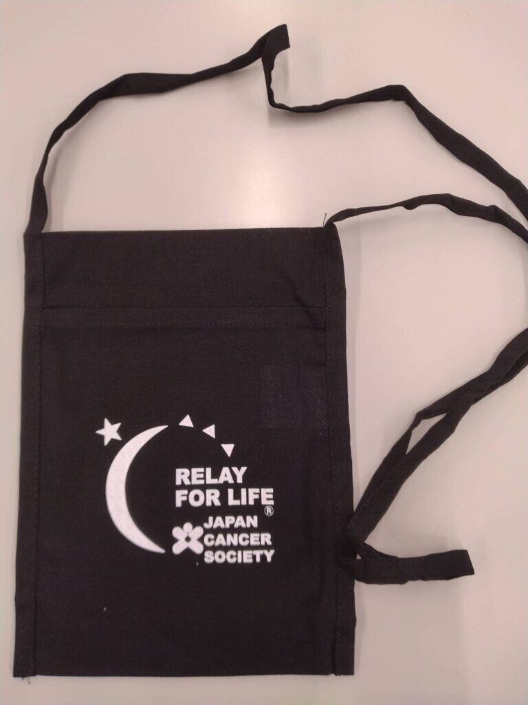 縦22.5cm、横17㎝、紐の長さ117cm、表と裏がポケットになっています。マチはありません。